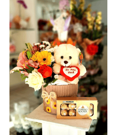 BOX C/ PELÚCIA E CHOCOLATE FERRERO